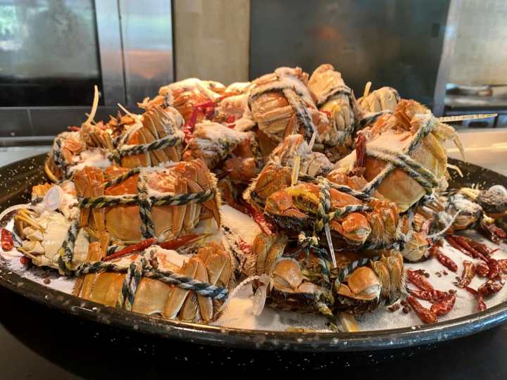 长假第一天,黄龙饭店D’Café餐厅的大厨团队,一大早就开始忙碌起来。三千多只来自阳澄湖的大闸蟹,新鲜抵达酒店餐厅后厨。