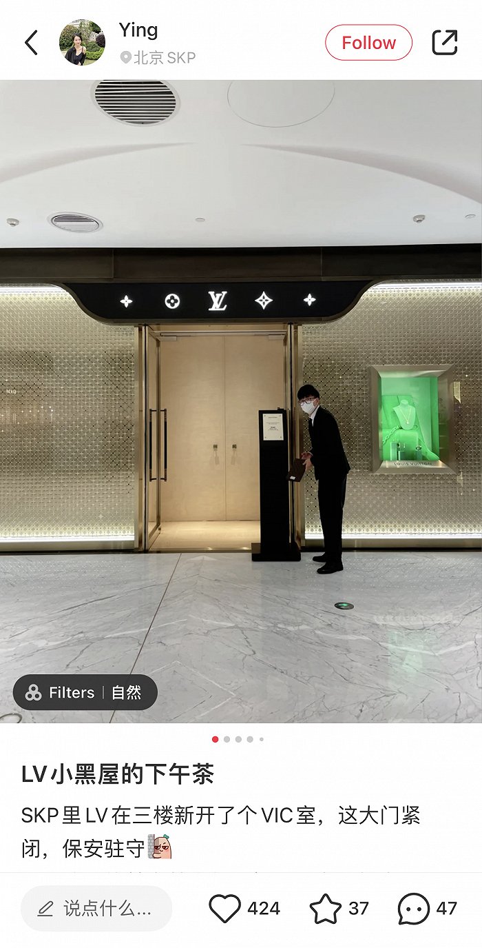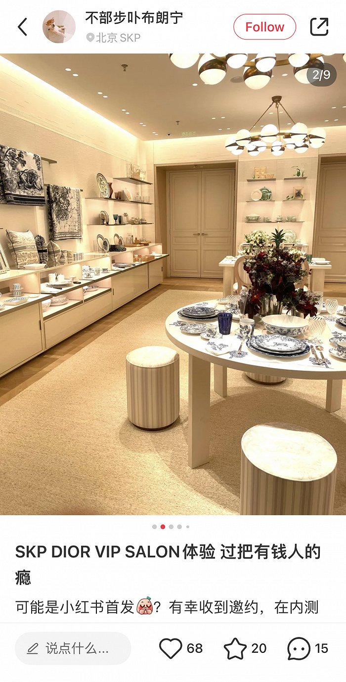 对外宣传中,不同品牌对会员室有着不同称呼,例如“专属服务空间”或“高级订制沙龙”。但在小红书等社交媒体上,那些前往北京SKP的消费者更愿意称其为“小黑屋”。