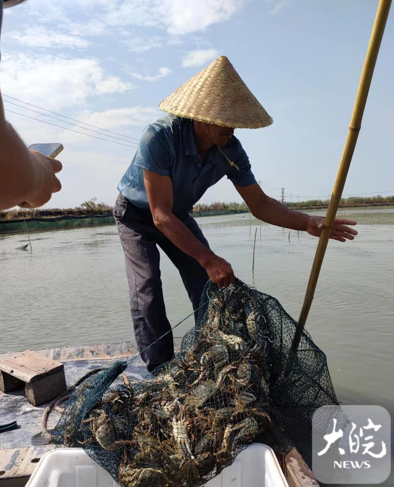 大皖新闻讯 10月3日,五河县一处沱湖螃蟹养殖基地里,慕名而来的蚌埠市民正在学习抓螃蟹。