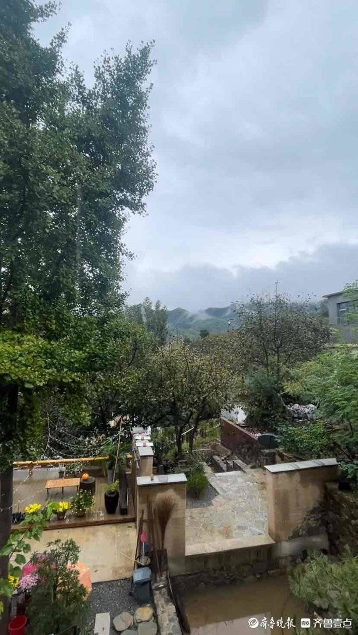 蒙蒙细雨中,远处群山笼罩在升腾的云雾之中,宛若仙境。住在济南南部山区九如山脚下柒舍宿集的客人王彤拿起手机拍了个照——眼前好山好景,身边亲朋好友,这比她想象中的民宿生活要更惬意。