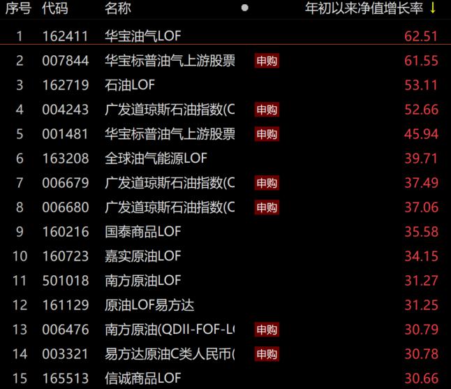数据显示,截至10月11日,今年以来共有15只QDII基金累计收益率超30%,其中13只为原油主题或以原油相关产品为主要投资标的的基金。
