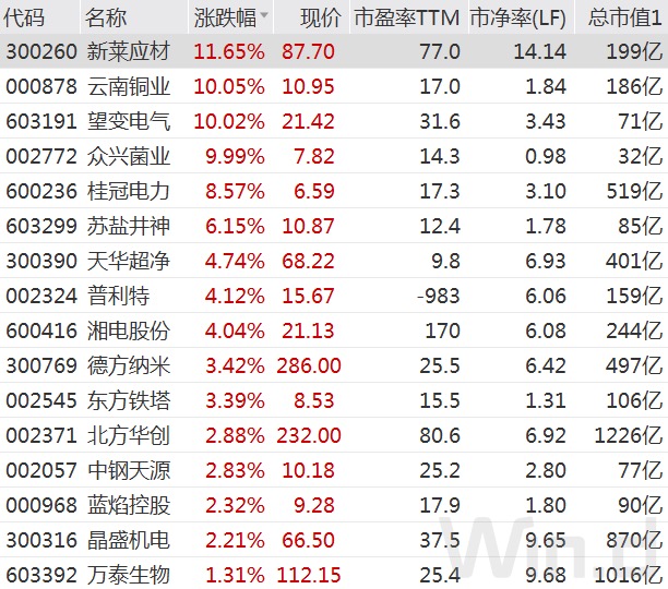 10月11日晚间,上市公司扎堆公布2022年三季度业绩预增公告。受此影响,相关个股集体活跃。其中,众兴菌业一字涨停,云南铜业、京望电气涨停;新莱应材、桂冠电力、苏盐井神、天华超净等领涨。