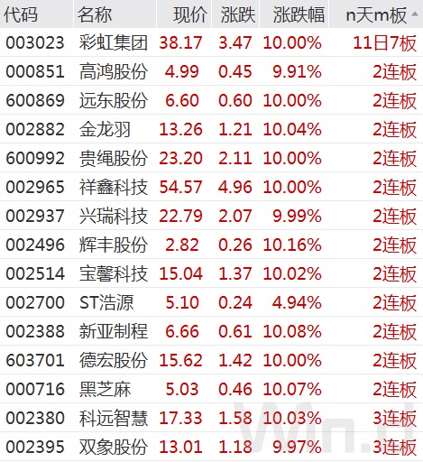 其中,彩虹集团11日7板,竞业达6日5板,汇绿生态、ST鹏博士7日4板,延江股份、通灵股份20%涨停。此外,记者注意到,近几周两市共有109只股突破前期高位,仅10月12日当天,就有16只股创出历史新高。