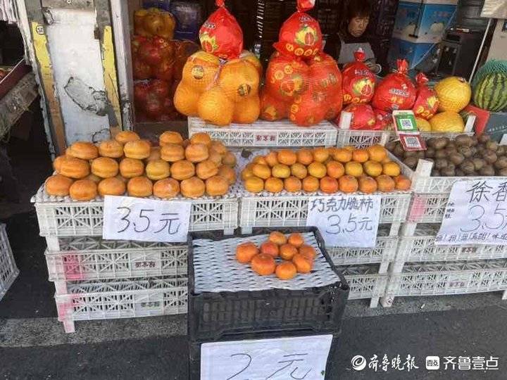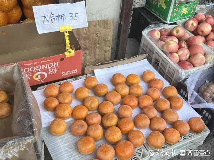 每年的9月-11月,都是吃柿子的最佳时分。在济南七里堡蔬菜批发市场水果专区,几乎每个摊位都摆着柿子,既可以零售也可以按箱批发,看到有人前来问价,商户们积极地招揽着生意。