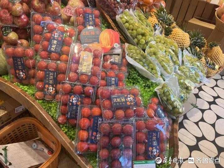 19日,在济南的一家连锁水果超市里,与火葫芦柿子外形相似的“火虹柿”摆在显眼的位置。店员告知这个和“火葫芦柿”一样,产地山西,也是新品种,个头如核桃大小,没有核,剥开一个小口直接可以吸着吃,一盒500克售价11.5元。