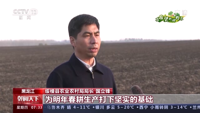 黑龙江省绥棱县农业农村局局长国立锋:重点发挥22个农机合作社、600台套大型机械的作用,实行统一调度、分期作业的模式。截至目前,已完成秋整地52万亩,为明年春耕生产打下坚实的基础。