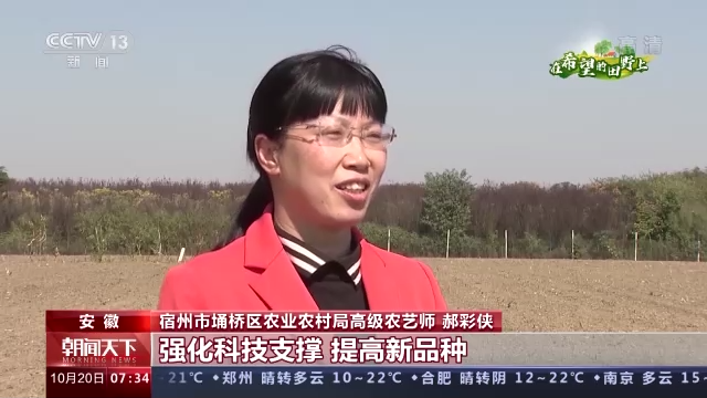 安徽省宿州市埇桥区农业农村局高级农艺师郝彩侠:290名农技人员在一线分片指导,强化科技支撑,提高新品种、新机械、新模式的覆盖率,确保月底前全面完成238万亩冬小麦播种任务。