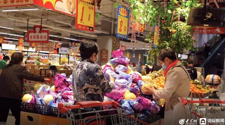 柚子价格降低,记者在超市看到,市民大多一次性购买两到三个柚子