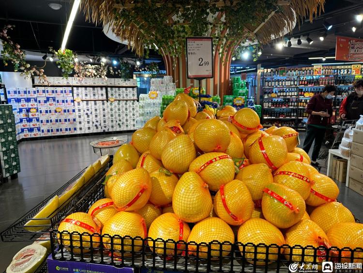10月20日,记者来到济南某大型连锁超市。在水果区,记者看到红柚价格为2.99元一斤,普通白柚单价为1.8元一斤,该超市水果区工作人员介绍,“今年柚子价格低了,比刚上市时每斤便宜了一块钱,这个价格是远远低于往年水平的。”