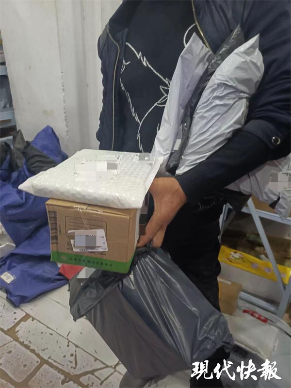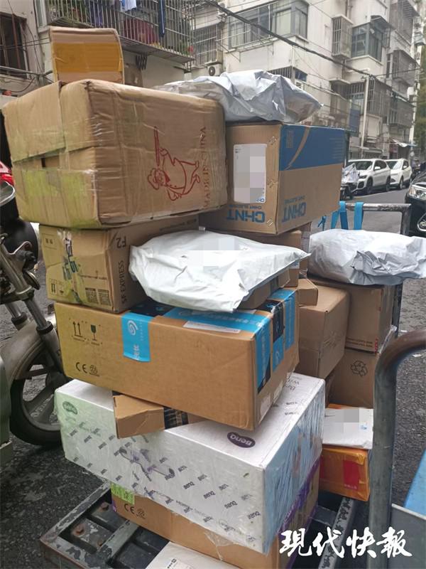 后面取件的报一下号码。10月27日,在南京秦淮区银龙南苑的一菜鸟驿站,门口刚到了一批快递,工作人员正在拿搬运。快递架上,快递摆得满满当当,地上还堆了不少。不少市民排队拿快递,市民刘先生手上拿了4个快递,腋下夹了3个,还有1个正在取。他说:这都是10月24日晚上下单的,没想到这么快就到了。