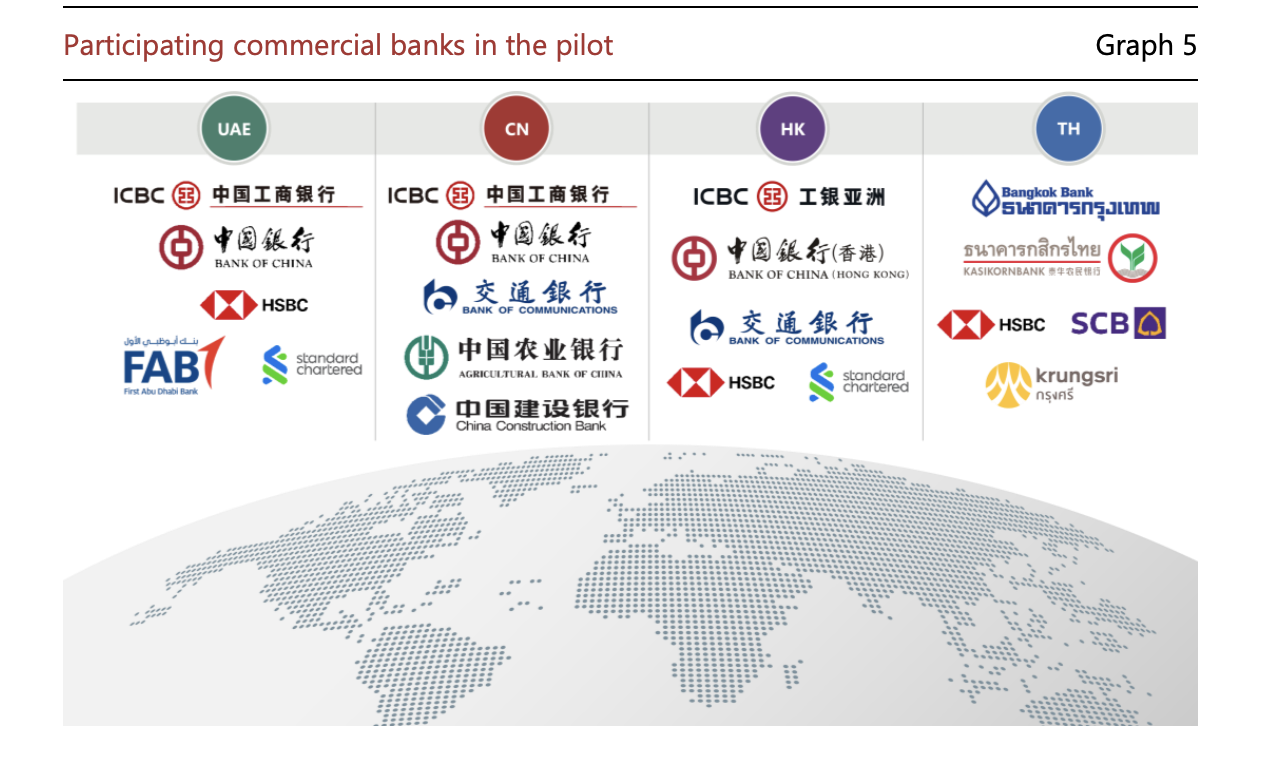 参与此次“货币桥”项目试点测试的20家商业银行。图片来自《报告》