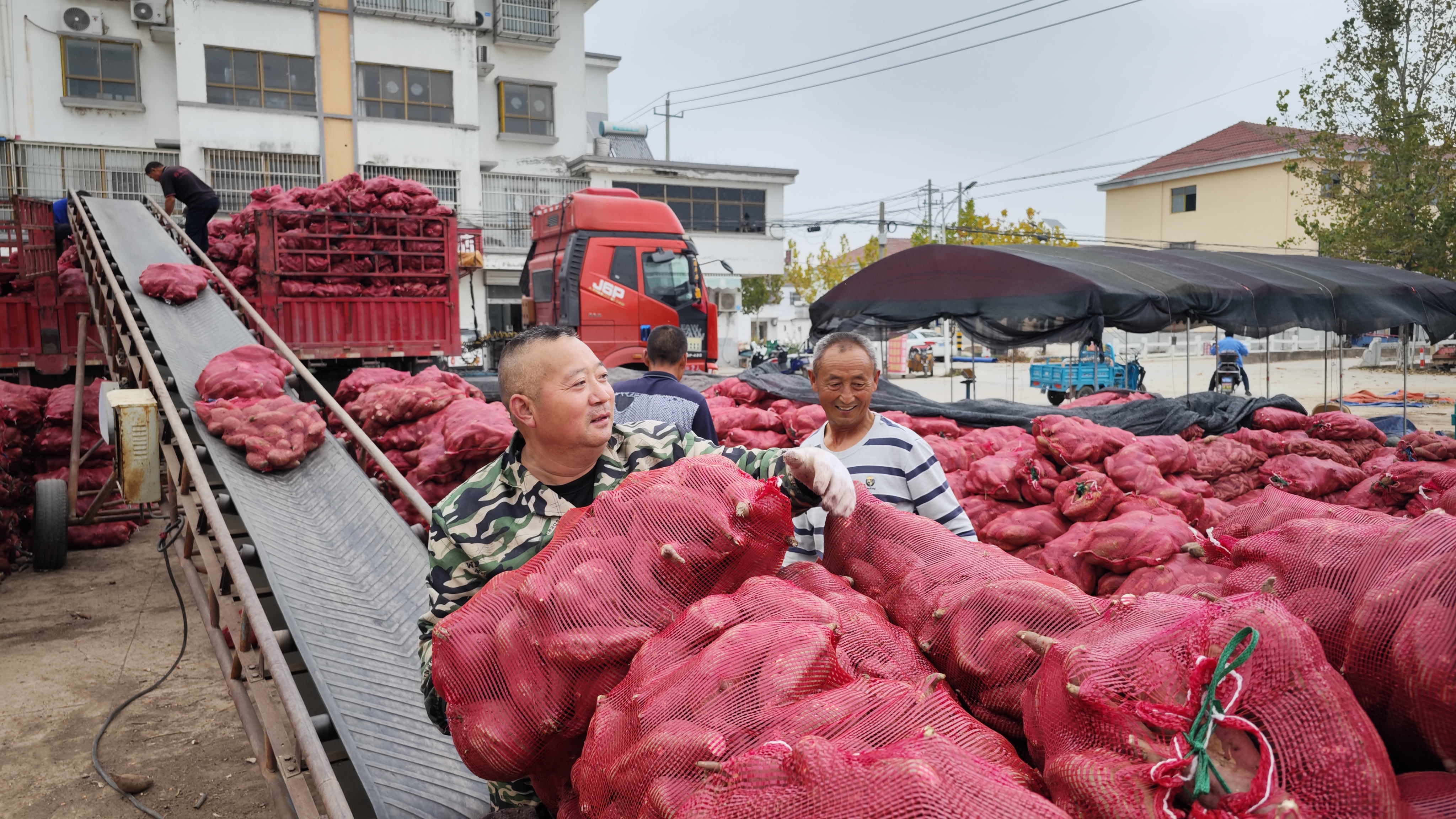现代快报讯(记者王晓宇通讯员孙荪王华)秋风拂过,丰收的喜悦扑面而来。10月31日,在连云港灌南县田楼镇红薯种植基地,今年新种植的新品红薯冀薯26喜获丰收。农民们抢抓晴好天气,在肥沃的土地里采收红薯,绘就出一幅丰收的田园画卷。