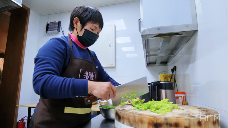 任富珍正在准备员工餐(央广网记者朱冠安摄)