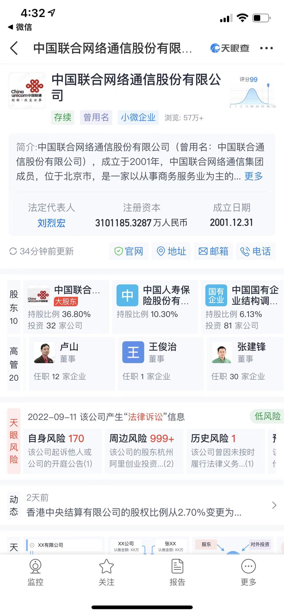 极目新闻记者在天眼查APP查询看到,腾讯控股有限公司高级执行副总裁卢山同时担任中国联合网络通信股份有限公司董事职务。