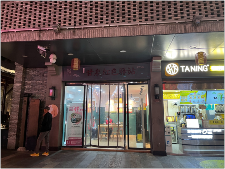 精心布置的墙面挂着各种公益活动照片,桌上摆着两本厚厚的摘记本,冰柜里放置着免费饮用的矿泉水,店门口挂着当日“店长”的简历……暮色下,位于温州市区蝉街口的“隔壁邻舍”禅街甘泉红色驿站,显得格外温馨。