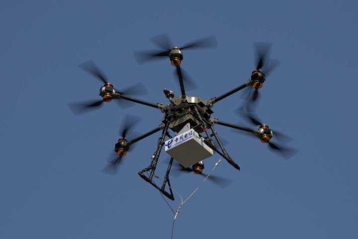 这只黑色“大鸟”就是中国电信浙江公司用于应急通信的系留式无人机