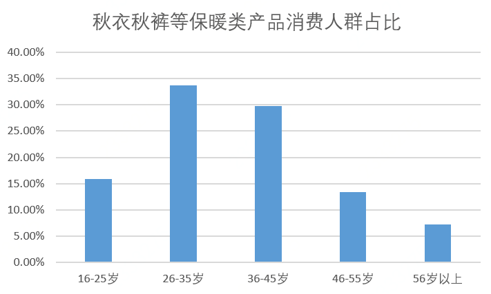 京东消费趋势消费及产业发展研究院发布的数据显示,自进入10月下旬后,随着天气转寒,秋衣秋裤的搜索次数较当月中旬环比增长230%。值得注意的是,在搜索的相关人群中,35岁以下的用户占比达到了51.3%。