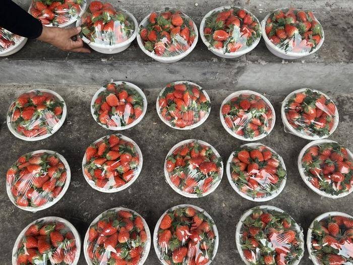 “这都是今年才下的‘头茬’牛奶草莓,你要是嫌贵可以再等等。”一名销售草莓的批发商表示,今年的草莓上市价相较去年已有所下降。