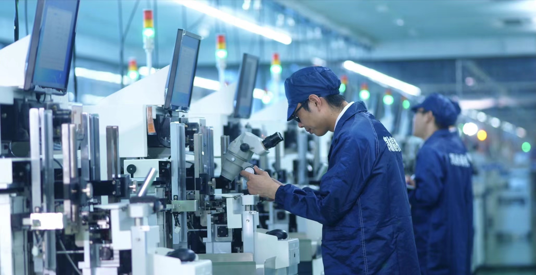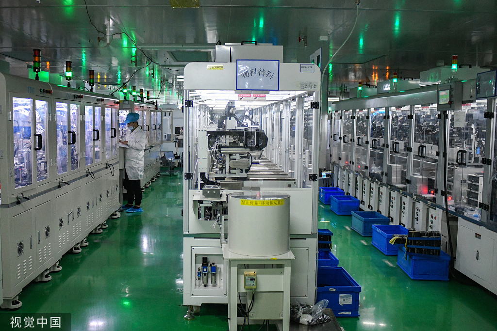 2020年12月18日,广东东莞,监控镜头生产的智能制造车间。视觉中国资料图