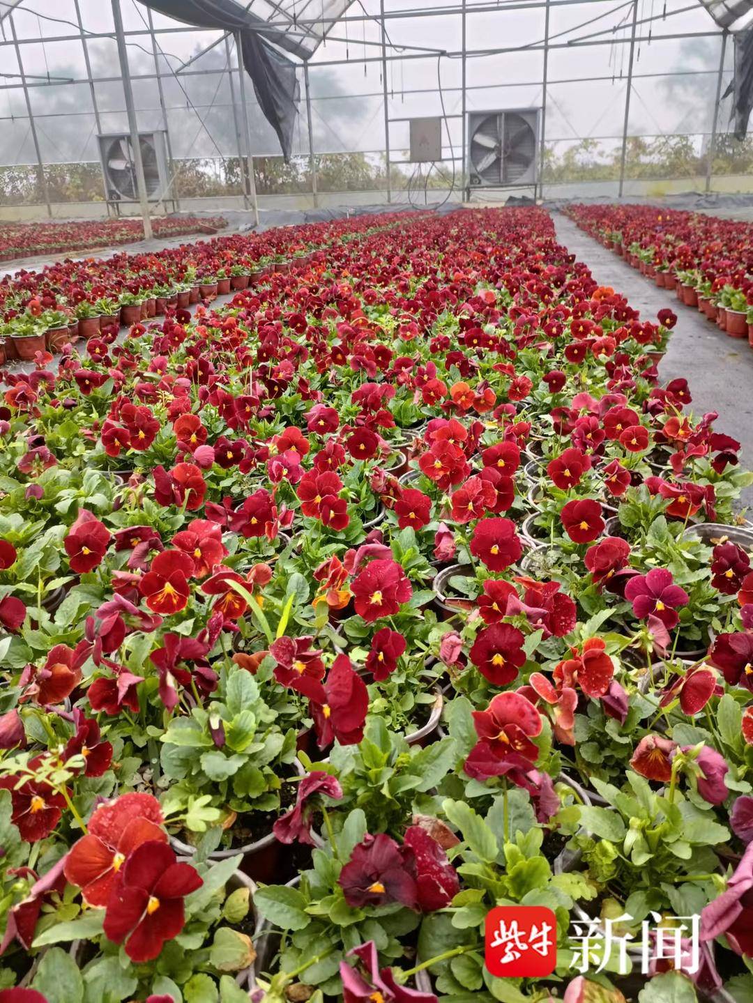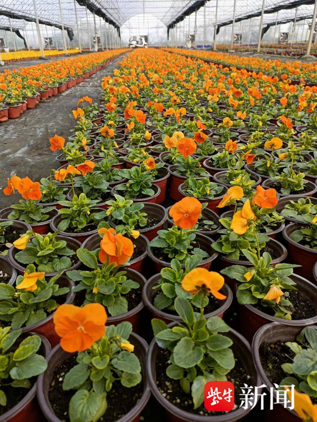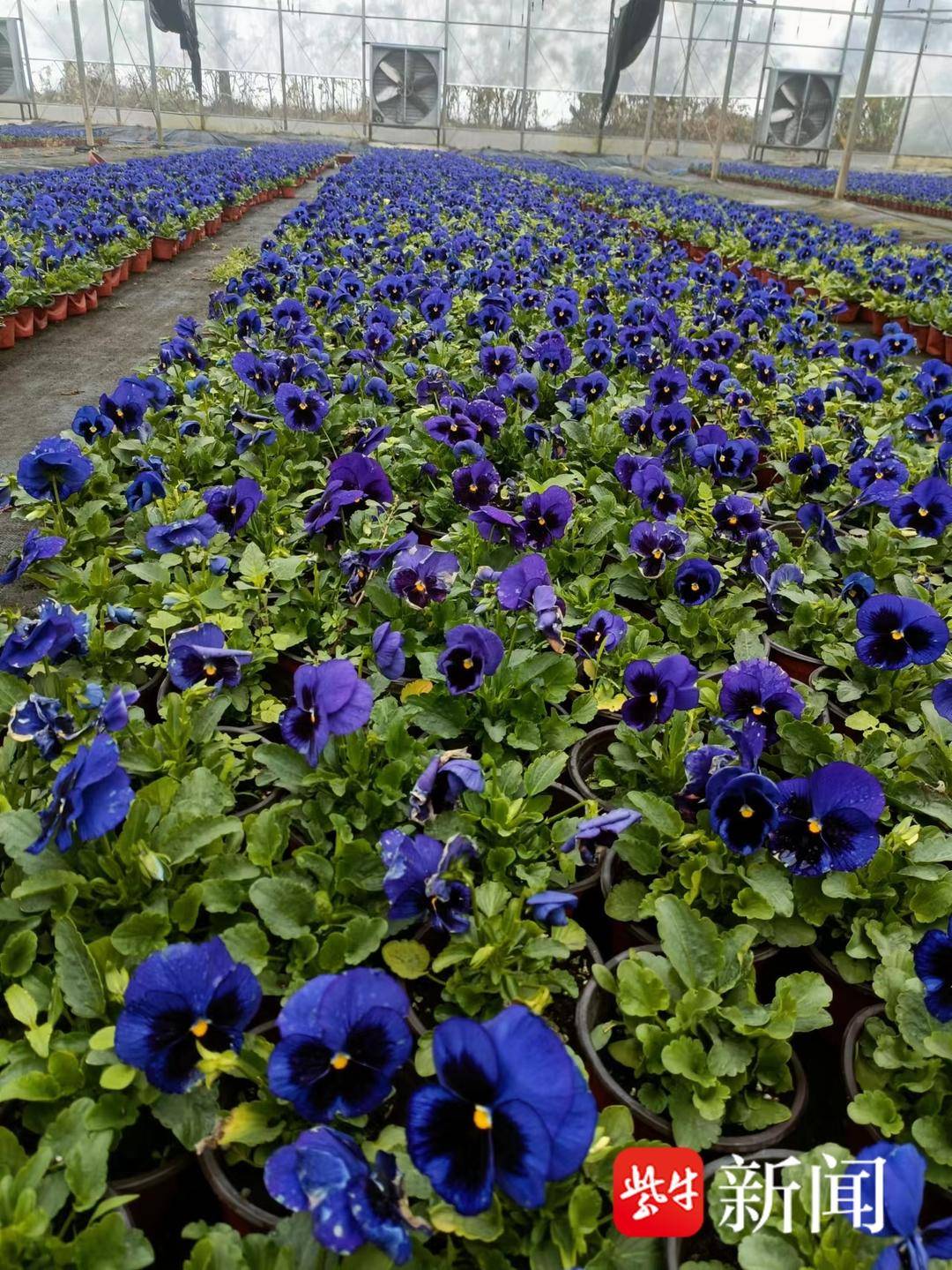 小雪过后,天渐寒,冬渐深,好多花怕冻逐渐衰败,但三色堇却傲寒绽放、五彩斑斓。近日,记者来到江苏康康农业科技发展有限公司的大棚内,一片三色堇花海映入眼帘,一朵朵三色堇小巧可爱,不娇不艳。细看,一朵花有黄色、白色和紫色三种颜色,花心是黄色的,花心被白色包围,外环是紫色的,清新雅致又富于变化,让人浮想联翩。