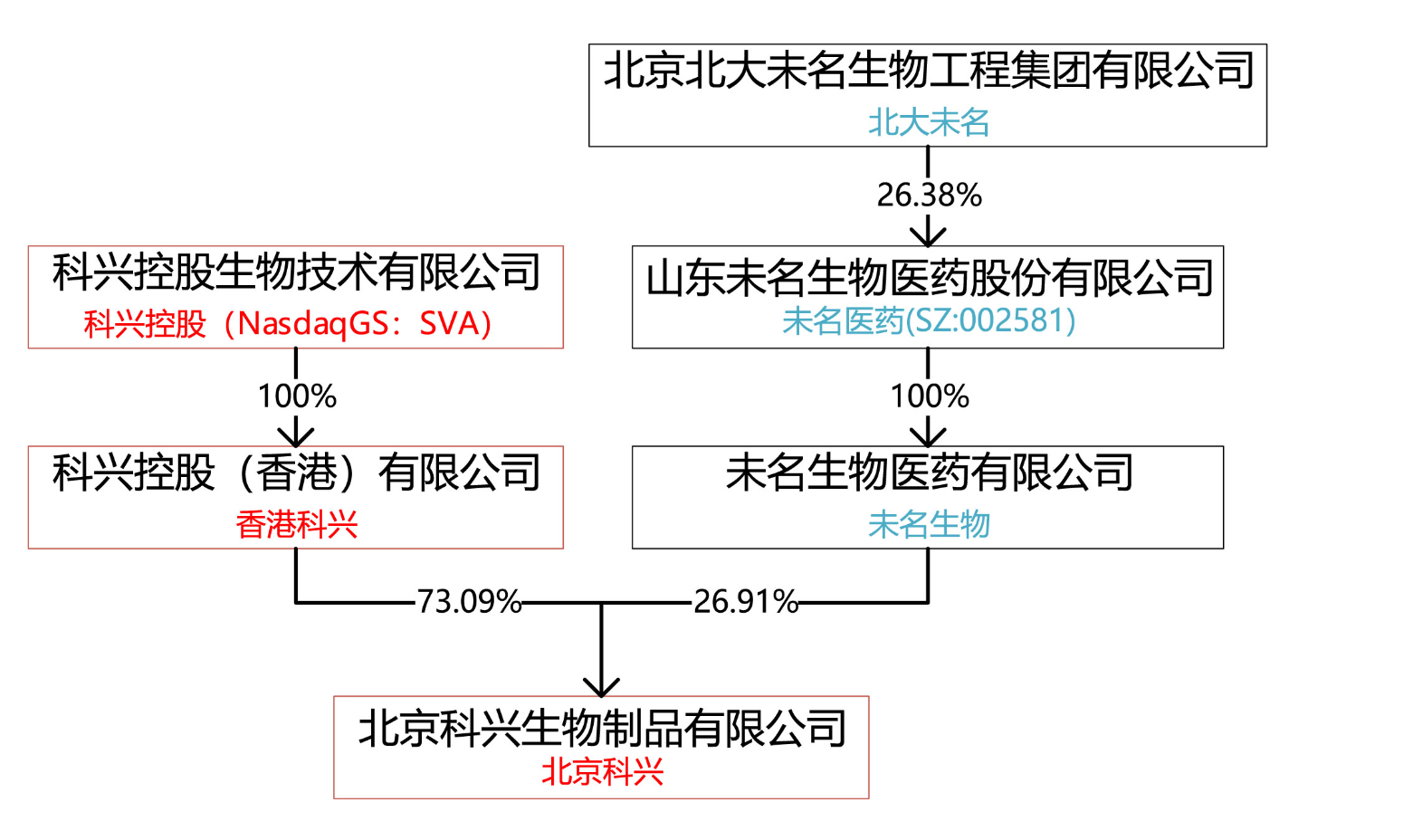 新冠疫情以来,未名医药因持有北京科兴生物制品有限公司(以下简称“北京科兴”)26.91%的股份,而一度被视为新冠疫苗概念股,股价多次出现异动。实际上,参与新冠灭活疫苗研发的是北京科兴中维生物技术有限公司(以下简称“科兴中维”)。