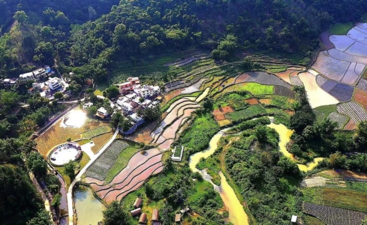正午时分,山里的薄雾散尽,藏在雨林深处的黎族村落出现在眼前。一水护田将绿绕,两山排闼送青来。小小的村落宁静而秀美,仿佛世外桃源。