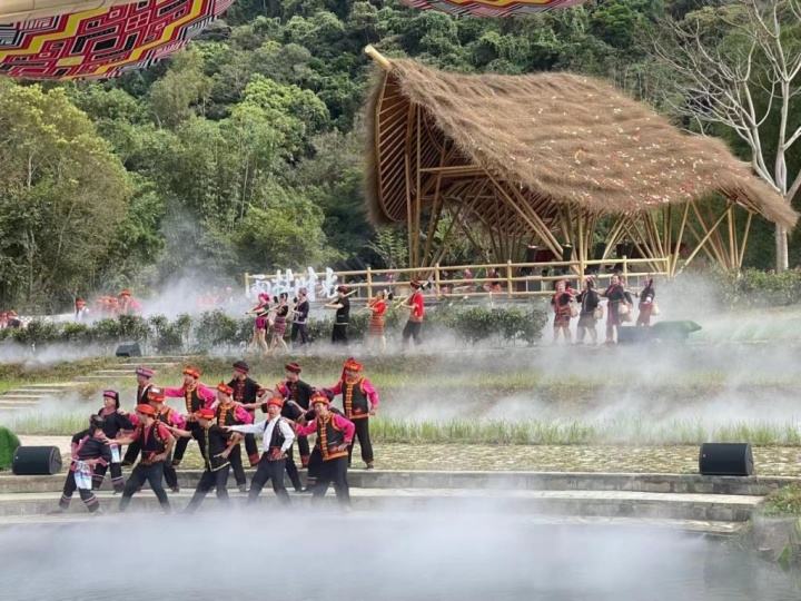 一罐糯米酒喝完了,远处广场上传来了黎族传统乐器鼻箫、锣钯的声音,这是村里的黎族风情歌舞队正在排练。