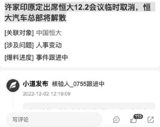 同时,上述人士表示,此次传言或许与恒大财富兑付的最新消息相关,可能引发了一些人的不满。