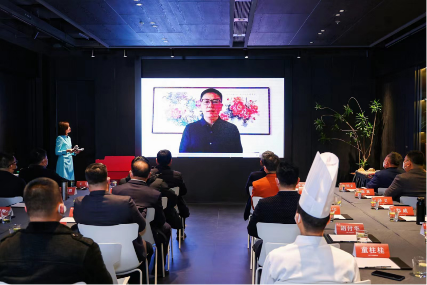 辽宁现代服务职业技术学院烹饪学院院长、辽菜师傅学院院长丁建军以视频形式发表了贺词。他在讲话中说:“辽宁山川并列,河海交汇,是世界上少有的山、海、林、田、湖、草、沙齐全的地区之一,在食材的多样性和特殊性方面非常突出。希望通过本次交流活动,充分了解鲁菜原料质地优良,以盐提鲜,以汤壮鲜的烹饪技法,为辽菜精细化、品牌化的发展提供更多的创新参考。”他同时表示,辽宁现代服务职业技术学院是一个培育辽菜烹饪储备人才的摇篮,通过持续做好2022辽菜对外交流工作,以美食为媒介,向大家展示一个开放创新的辽菜和专业包容的高校。