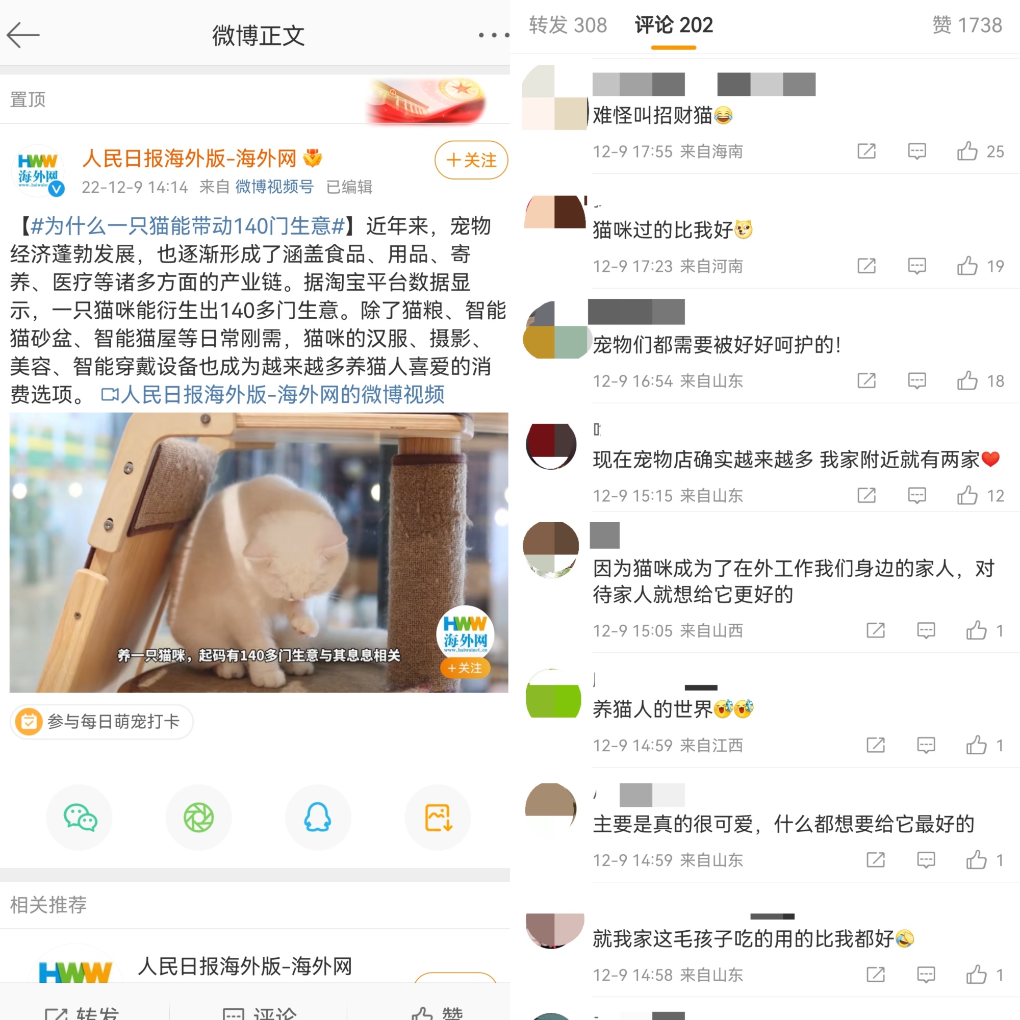 在社交网络上,吸猫、晒狗的内容也越来越多,带给人们很强的“治愈感”。近日,微博话题#为什么一只猫能带动140门生意#也引发了网友的热烈讨论,网友对此表示“难怪叫招财猫!”“就我家这毛孩子吃得用得比我好。”萌宠已经成为新的流量密码,消费领域里宠物经济的热度也在节节攀升。