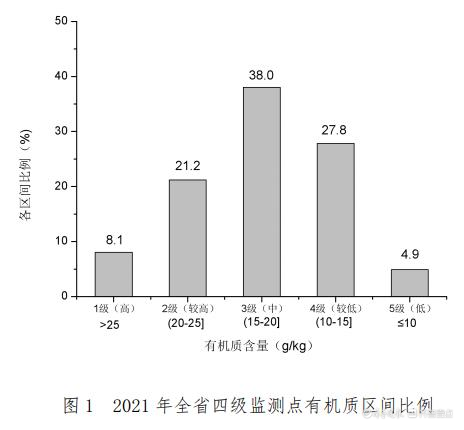 监测数据显示,2021年全省四级监测点土壤有机质有效数据为3215个,平均含量17.7g/kg。2016年到2021年,全省监测点土壤有机质平均含量总体呈增加趋势,分别为15.8g/kg、16.2g/kg、16.9g/kg、17.3g/kg、17.6g/kg、17.7g/kg,2021年较2016年增加12%。