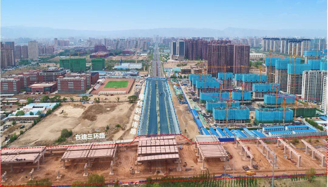 呼准立交是三环路工程最重要的一个工程节点,整个立交占地约400亩,立交设置为全互通,满足了南北、东西主线及各转向交通的快速出行。中建铁投集团三环路建设项目经理张开介绍,技术难点主要集中在呼准立交第六联钢混组合梁施工。“由于钢混组合梁跨度较大(51+54+50米)、重量较重(单件起吊重量大于42吨),且上跨有西二环快速路及地面辅路,施工前需对现有交通进行导改,支架搭设难度大,同时需在预制板安装完成将重达近2000吨的梁体结构顶升40厘米,施工难度大。”项目技术团队不惧困难、迎难而上,多次讨论、比选及验算,最终决定采用“钢管柱+盘扣组合支架”形式搭设钢混组合梁支架、PLC液压同步顶升设备对梁体顶升。施工期间,在地面辅道旁修建营运便道,将社会车辆分阶段导流。最终,这一技术及施工挑战,被成功拿下。像这样的技术创新还有很多,助力三环路高效施工。中建铁投集团三环路建设项目技术总监于振杰介绍,中建铁投技术人员针对三环路施工中运用的新技术、新方法及时加以总结,形成技术成果。《市政高架桥现浇大悬臂盖梁钢管柱型钢支架施工工法》《基于盖梁支撑体系中灵活调节模板标高的工法》等工法先后获评省部级工法7项;获得《施工架》《一种市政现浇梁大跨径通道承重装置》《一种预应力盖梁梁端模板》等实用新型专利3项;发表《大型枢纽立交工程多层现浇箱梁重叠施工技术》等核心期刊论文7篇。“工匠精神”高标准造就“便捷交通”。秦国珺介绍,三环路新建的西线和南线路段,采用“高架快速路+地面辅路”的快速路敷方式,断面布置为主路双向六车道,辅路双向六车道。工程结合桥墩布设,充分利用桥下空间,贯彻公交优先理念,地面辅路中央设置双向公交专用道,满足公交快速通行。道路外侧设置慢行交通,满足非机动车辆和行人通行需求。