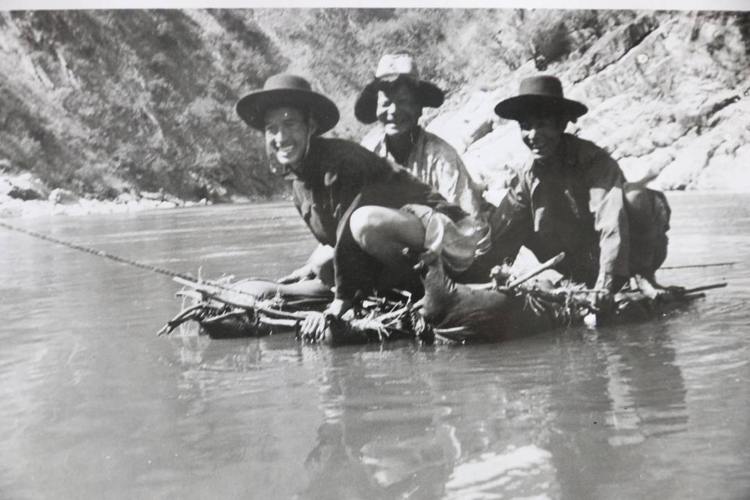 1981年,凉山州境内的羊皮筏渡河。凉山州交通运输局供图