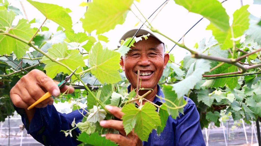 滨州市鑫农富昇农业发展有限公司特色农业葡萄产业园位于三河湖镇大营刘村,以种植“阳光玫瑰”葡萄品种为主,借助中央扶持资金,共承包300亩土地,与村集体合作经营,建立协作分红机制。通过推行规模化、订单式的经营模式,提高了种植户收益,拓宽了农户增收渠道。目前,阳光玫瑰亩产量达4000斤,每亩收益达4万元左右,实现了群众、集体双增收。