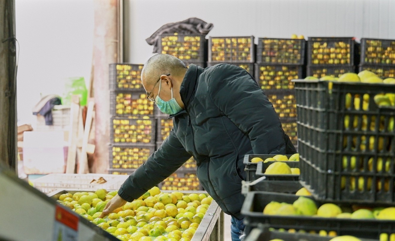 在分选仓库里,分选机器昼夜不停运转,就这也忙不过来,有时还会启用土办法——用两根竹竿制作成简易分选器开始分选柠檬,倒也有用,就是要花更多精力盯着,生怕简易工具出错。因为嗅觉灵敏、经验丰富,他能迅速辨别柠檬的品类、等级。但这样做的“后果”也很明显,在柠檬味充斥的车间里,眼睛会流泪难受,直接“酸倒”。