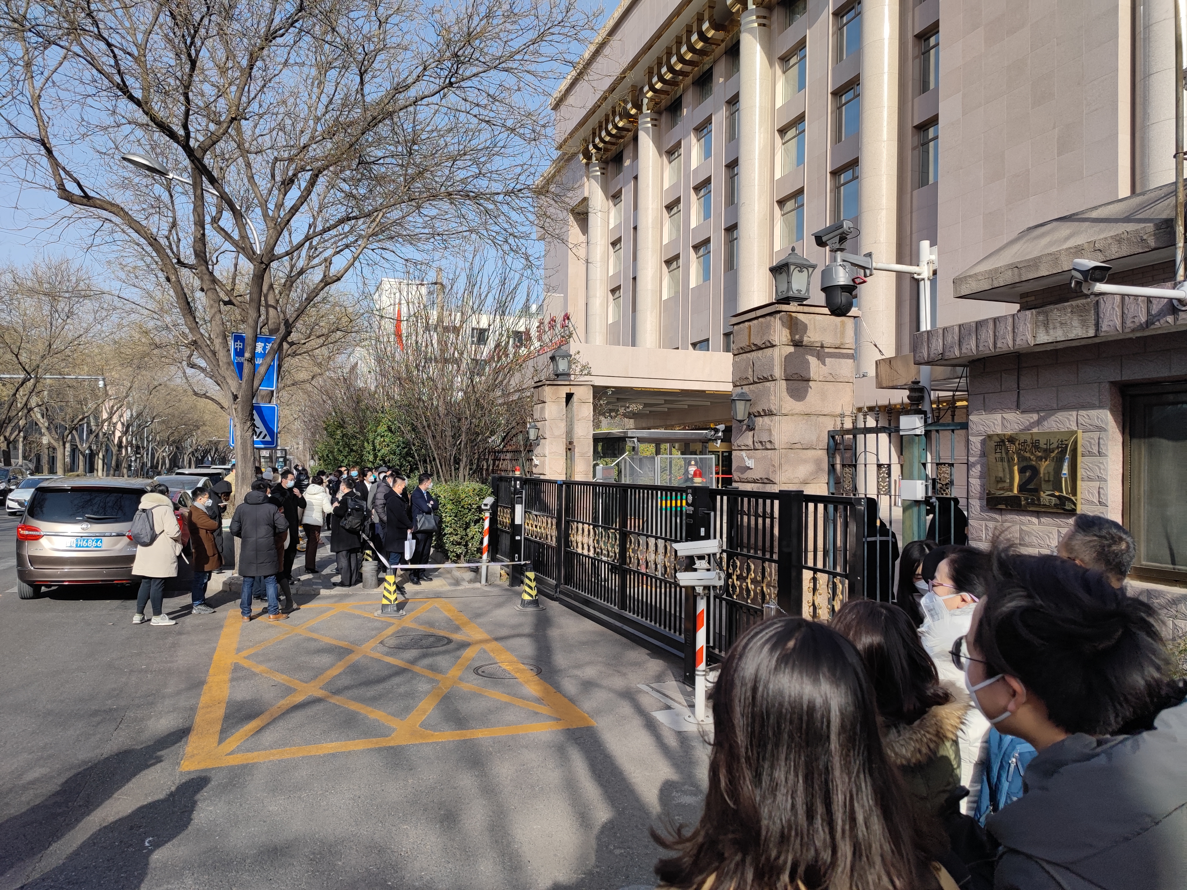 1月6日下午,企业代表排队等候入场。澎湃新闻记者周頔图