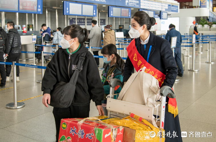 在候机楼内设置“暖心向导岗”,协助“首乘”旅客办理相关手续,帮助老年旅客、晚到旅客等特殊群体通过专用通道快速办理手续,确保每一位旅客都能安心顺心地踏上回家的旅程。