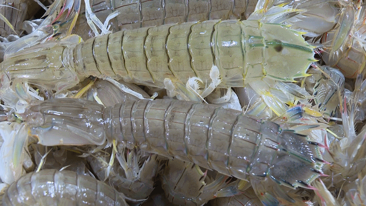 那么问题来了,如何才能挑选到肉满膏肥的虾蛄呢?据当地村民介绍,母虾蛄个头较小,多数有“膏”,公虾蛄个头较大,肉质肥美紧实。区分虾蛄公母的方法很简单,母虾蛄腹部靠近头颈的位置有三条乳白色的横线,透过灯光可以看见母虾蛄背部中间有一条明显的实线,而公虾蛄通体只有一种颜色。