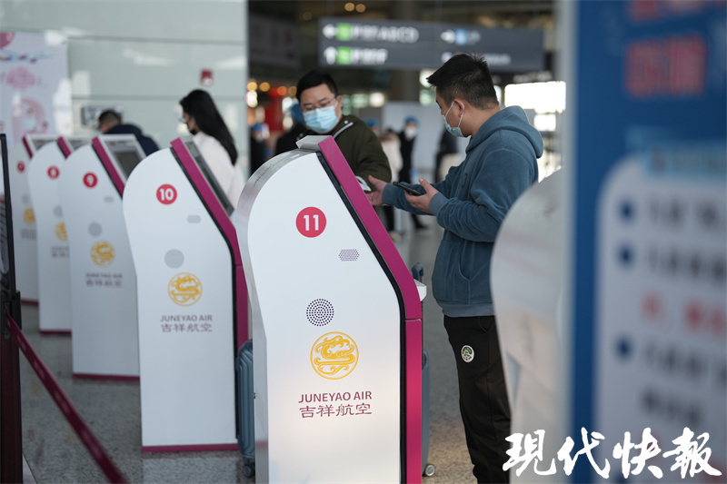 △吉祥航空旅客借助自助设备提前打印登机牌吉祥航空供图