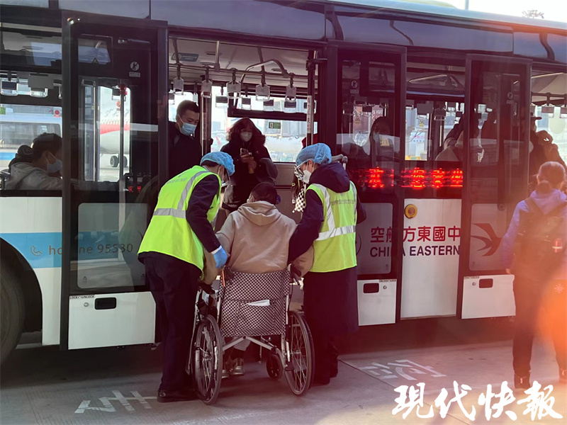 △东航工作人员送重点旅客上接驳车东航公司供图