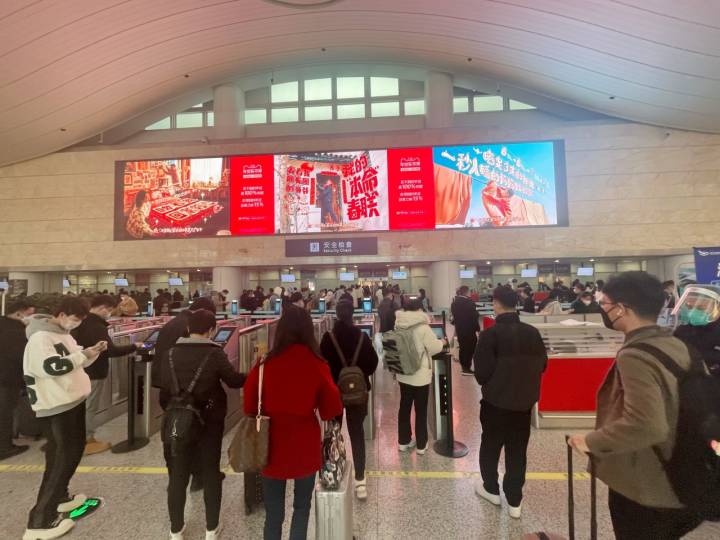 值机完成后,程德勇前往安检。春运期间,安检通道非常繁忙,记者看到,T3航站楼现场15个通道全部打开,但队伍还是要排好几个弯。“今天是春运以来最忙的一天,客流量非常大。”现场的安检工作人员告诉小时新闻记者。