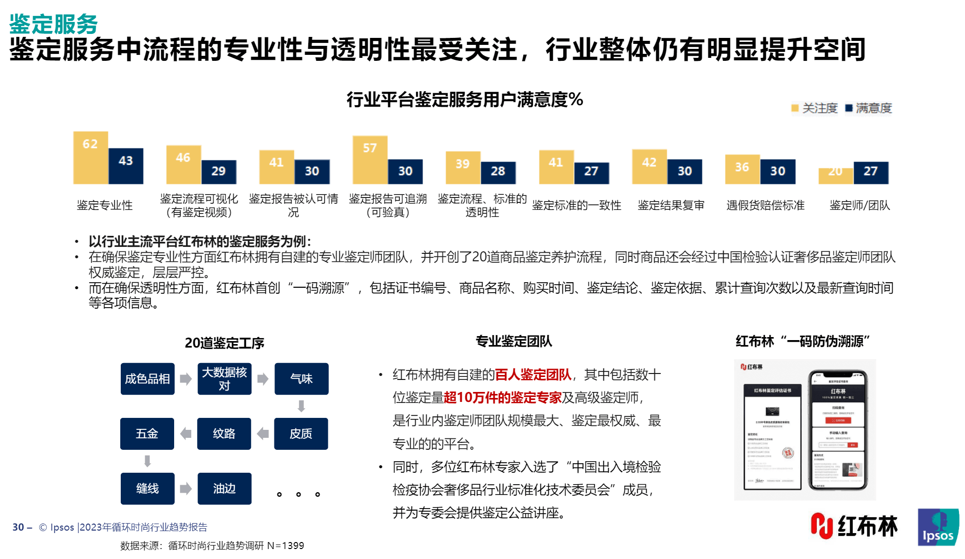 值得一提的是,此报告通过线上渠道,对覆盖全国30个省市区的用户开展调研,并线下访谈循环时尚行业资深从业者和第三方观察人士,对行业各平台鉴定、定价、仓储物流、增值服务等多个维度进行调研。调研结果显示,在用户综合满意度方面,红布林领跑行业。