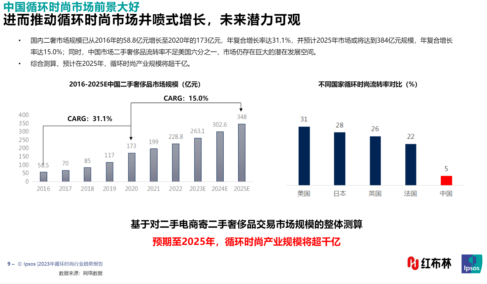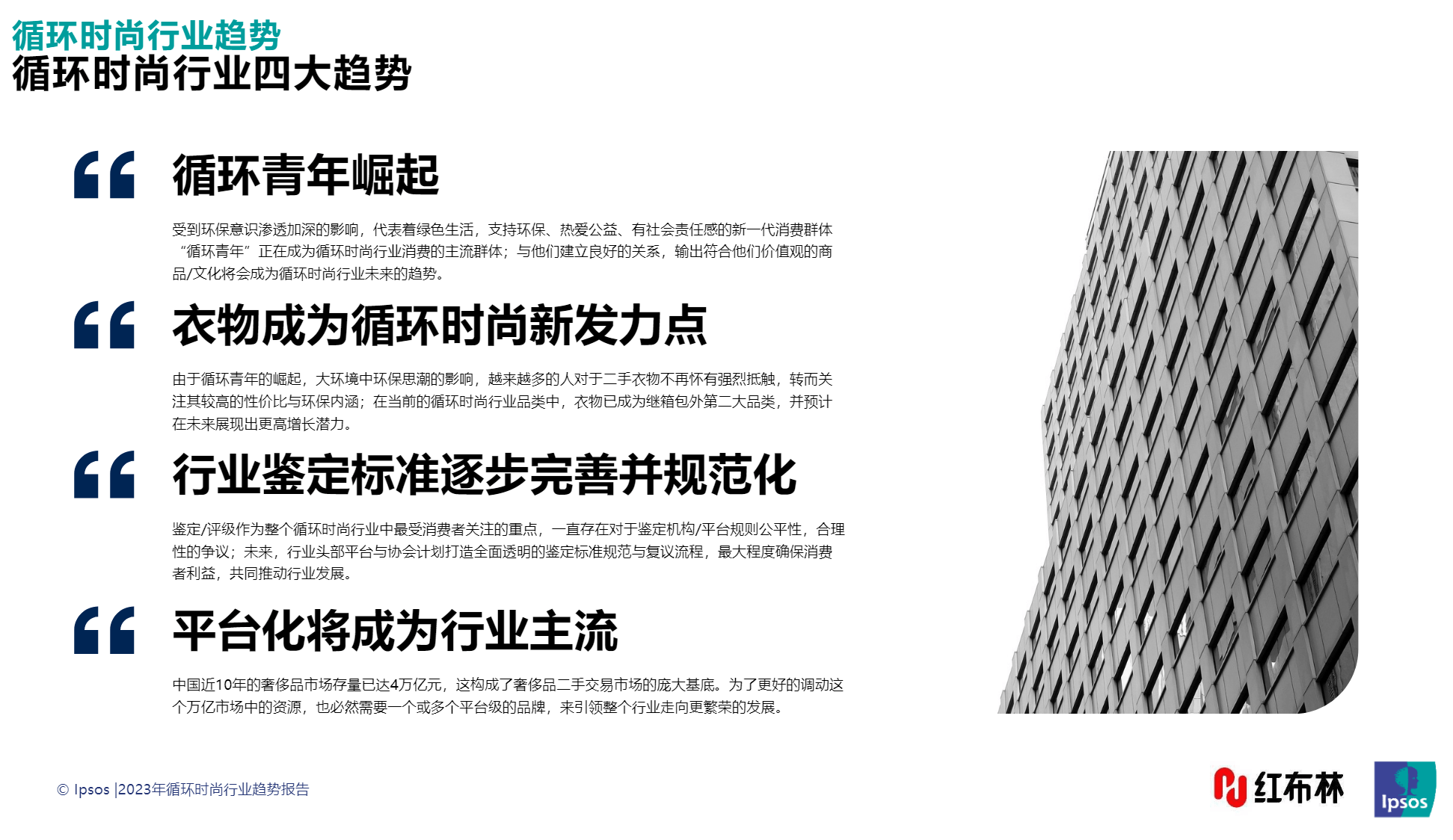 后疫情时代,在经济平稳较快回升基础上,挖掘内需潜力,激发增长动力,进一步增强经济复苏的稳定性成为主旋律。在低碳理念兴起的当下,让时尚产品在消费端二度流通及循环的"循环时尚",已成为消费市场复苏的新增量。1月9日,红布林联合益普索发布《2023循环时尚行业趋势报告》,透视循环时尚这个千亿赛道的新风向。