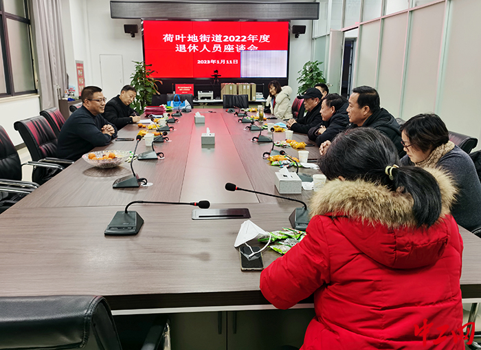 中工网讯1月11日,安徽省合肥市蜀山区荷叶地街道2022年度退休人员座谈会在街道一楼综治中心会议室召开,街道党工委副书记、办事处主任章鋆,党工委副书记解毅,区总工会专职副主席李有保,及9名离退休职工参加会议。