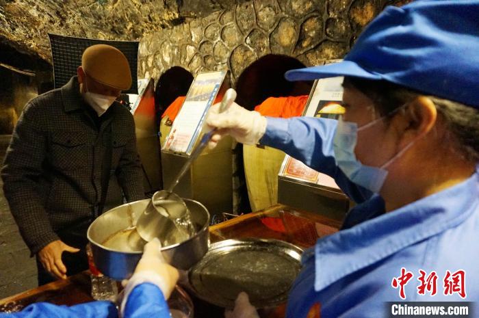 1月14日,广西桂林市象山酒窖工作人员为民众打酒。 欧惠兰摄