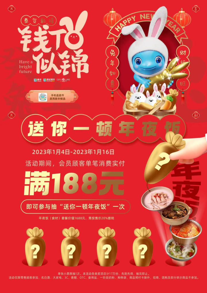 联华华商积极响应“活力暖冬消费季”,以消费抽奖、充值送礼、满送赠券等形式开展一系列新春促消费活动。