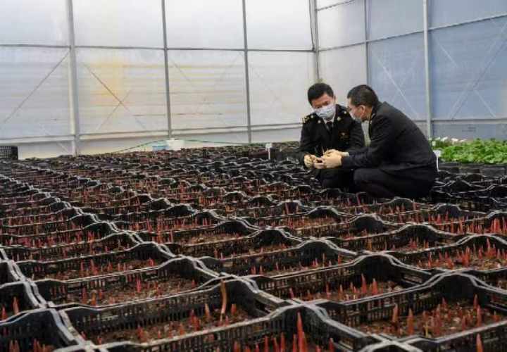 “我们对进口的种苗花卉进行严格检疫把关,防止国外花卉种球、种子中携带的病虫害在种植基地中传播,保护花卉绿植产业免遭有害生物侵害。在确保生物安全的前提下,我们作为属地海关,在目的地查检过程中也在不断探索新举措、新办法,支持种苗花卉高效引进。”嘉兴海关监管一科科长曹振宁说。