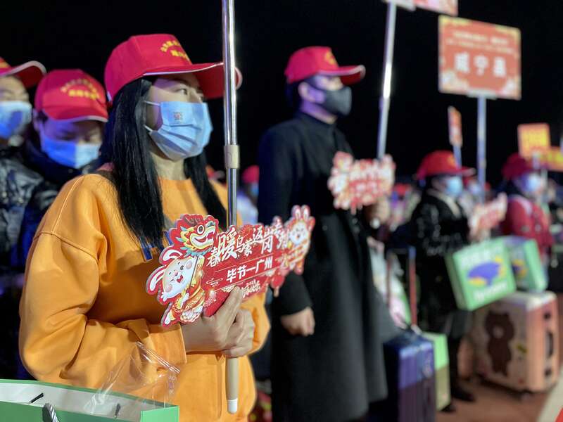 中国青年报客户端广州1月31日电(庞思齐中青报·中青网记者林洁)今天清晨,载有600名贵州籍务工人员的D2811次列车从贵州毕节站开出,于15:38分抵达广州南站。车上的乘客主要是节前已在广东就业的返乡员工,还有少量新入粤的务工人员,他们带着政府免费提供的返岗专列“大礼包”,前往广州、东莞、深圳、佛山、中山等珠三角地市开启新一年的工作和生活。