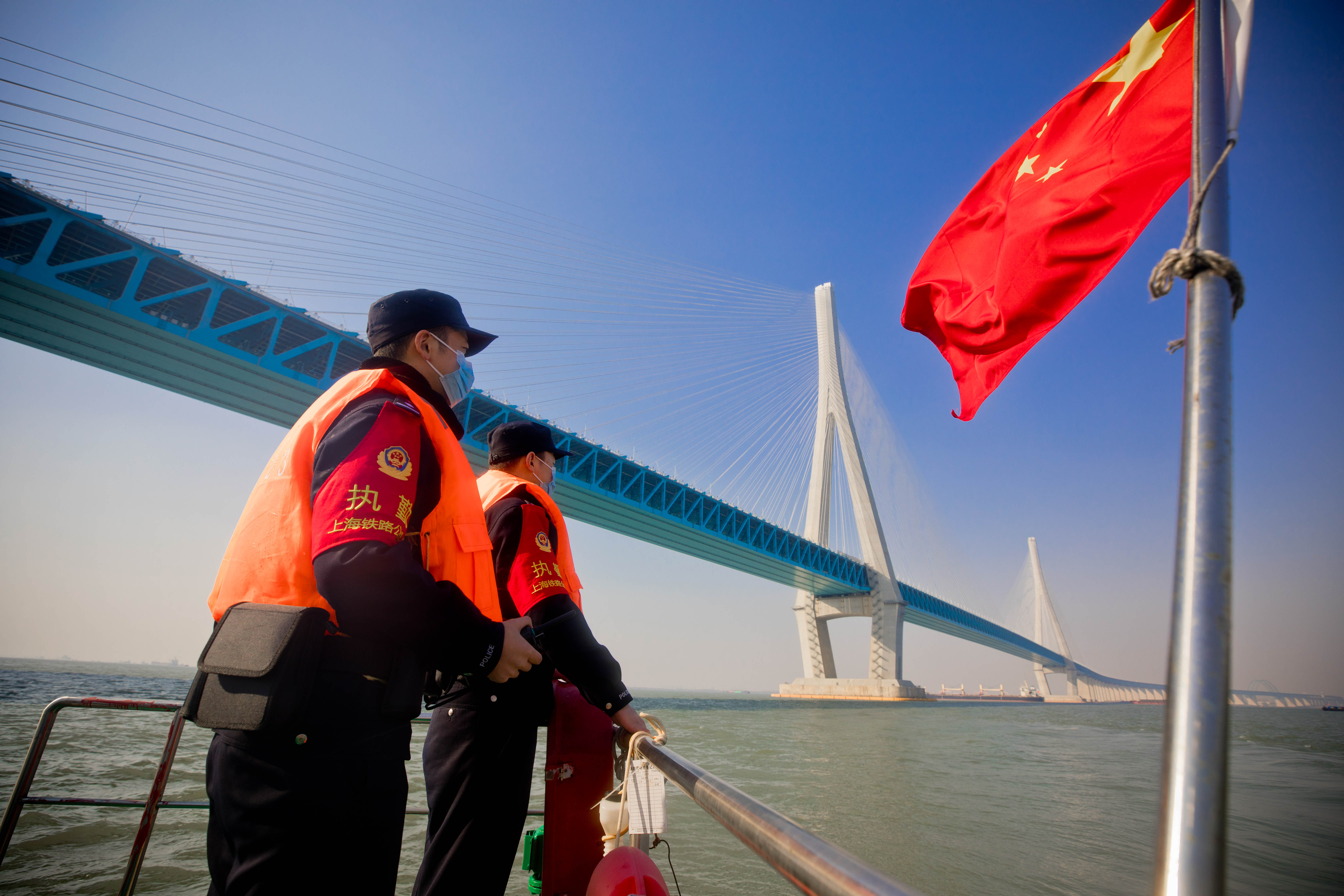 两位95后民警是这座公铁两用斜拉桥的“守桥人”。上海铁路公安处张家港站派出所供图