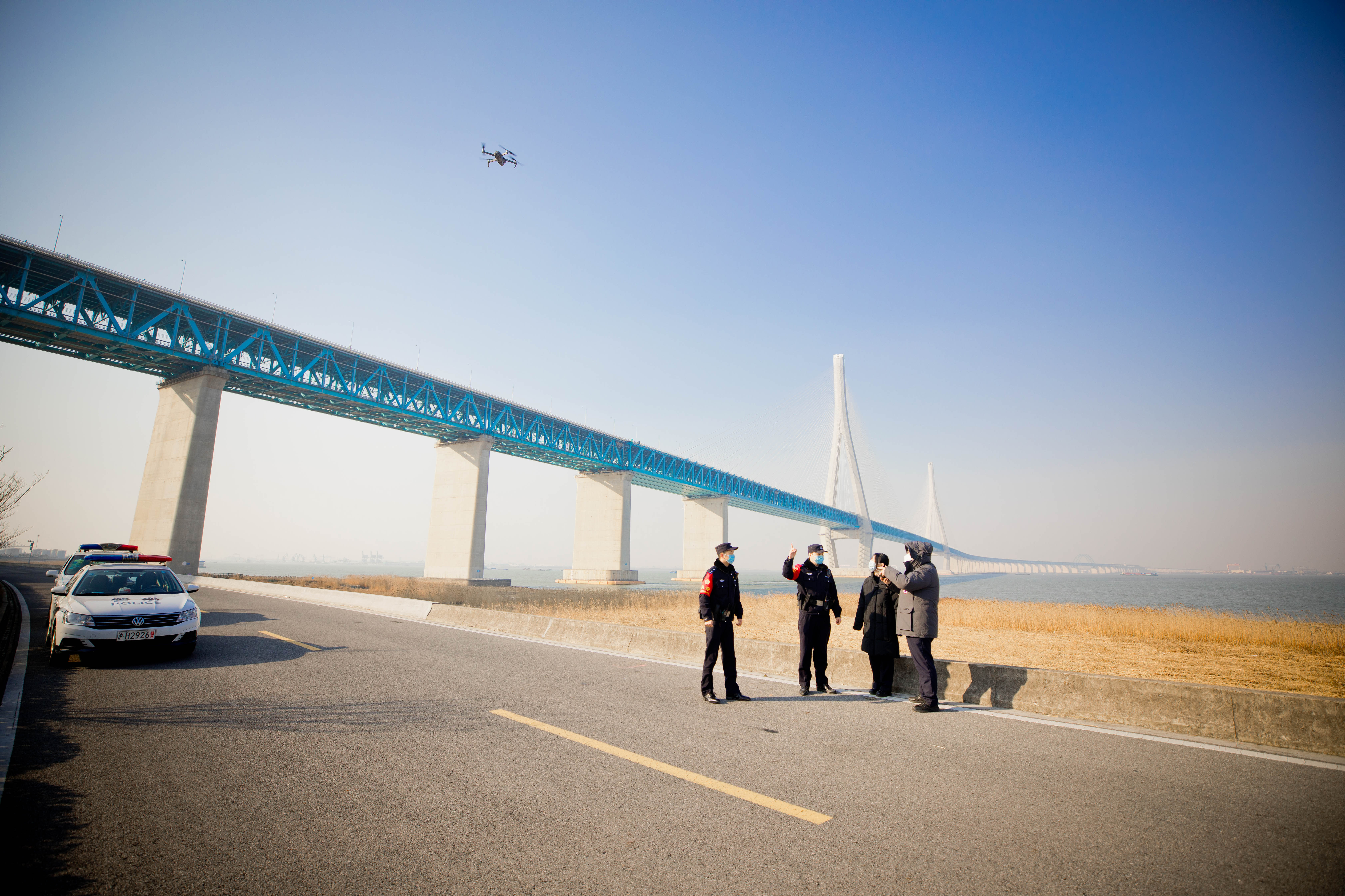 春运期间,沪苏通长江公铁大桥上列车往来繁忙。每天,经过这里的高铁列车有近150列,运行速度快,发车效率高,任何危害高铁安全的事件,都可能造成高铁路网的晚点甚至停运。“检查工作一点马虎不得。”巡防工作开始前,出生于1995年的钱佳晨和1997年的钱一锋对记者说。从张家港站派出所出发,需要驾车30分钟才能抵达大桥的巡防点,两年来,这条路他们不知道往返了多少趟,他们甚至能够清楚地说出沿途15个红绿灯的具体位置。